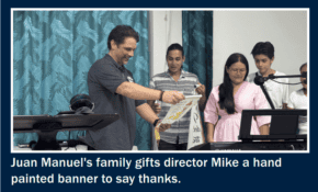 The second night of our visit, all the children prepared for a large performance to say thank you for the program. To our shock, who joined the children on stage for a presentation? Juan Manuel! He joined the kids in a song and even was joined by his family as they presented beautifully hand-painted banners to Mike for all that Children of Promise has done for their family.