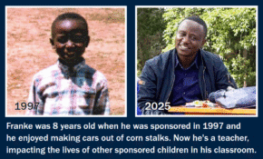 In 1997, an eight-year-old boy named Franke experienced the ripple effect of sponsorship firsthand. He later graduated from university and became a teacher.