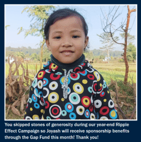 The ripple effect has begun in Joyash’s life because of you! Thank you.