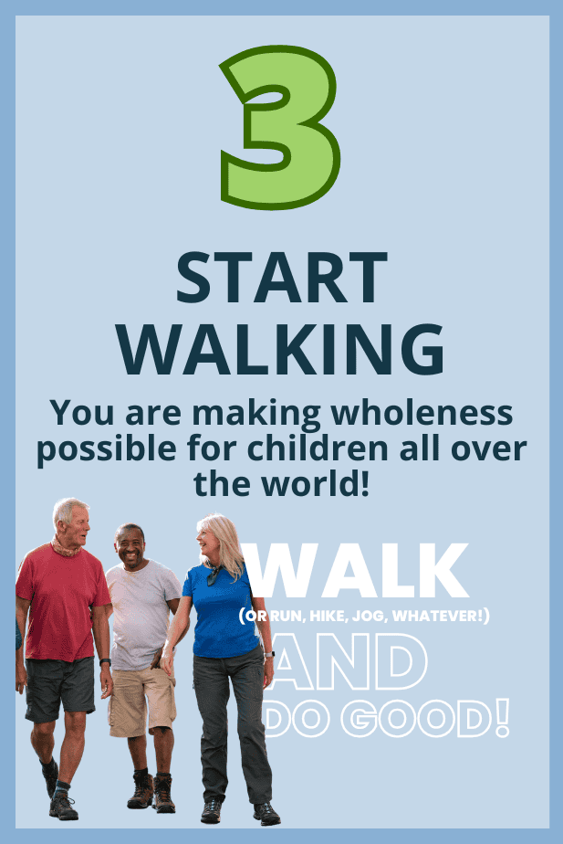 This November we are challenging you to take 10,000 steps a day towards wholeness. Registration is a suggested donation of $32 and then you’re off!